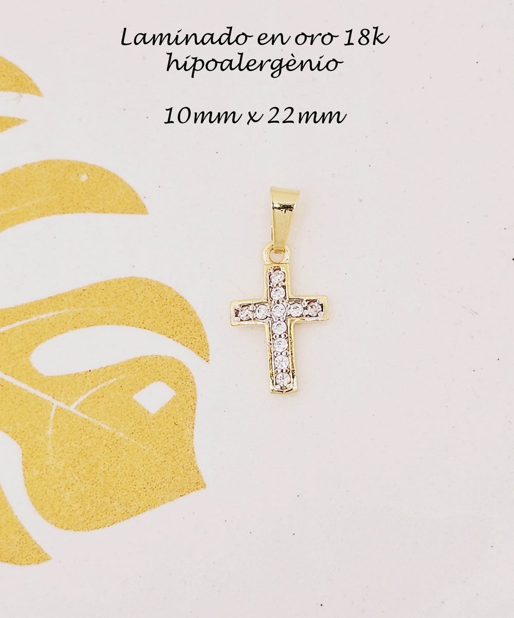 DIJE CRUZ CON PIEDRAS LAMINADO EN ORO 18 KL